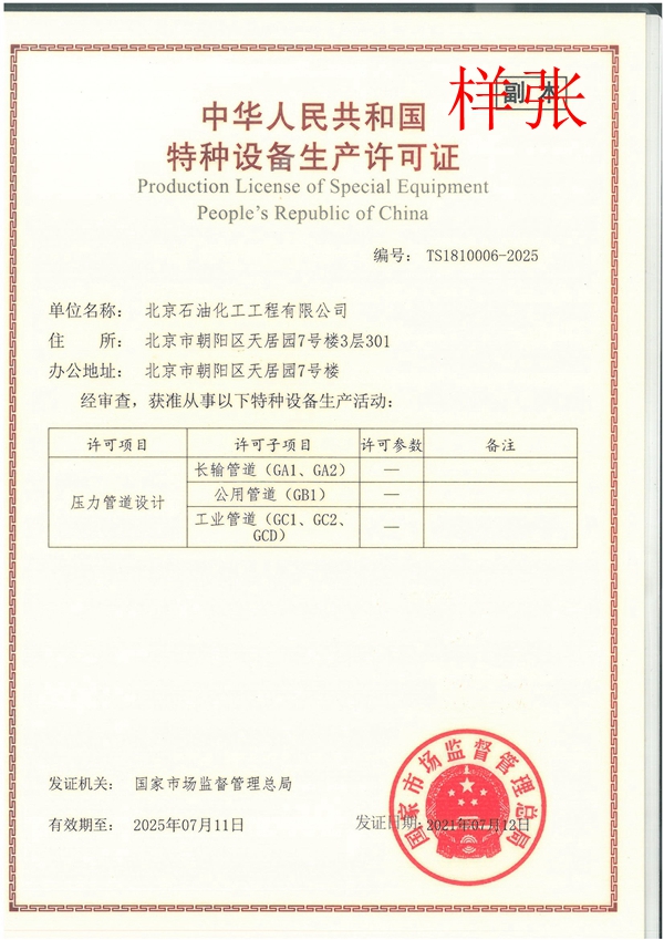 特種設(shè)備設(shè)計(jì)許可證(壓力管道)