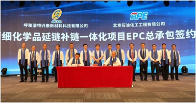 6月20日,呼和浩特興泰新材料科技有限公司新型精細(xì)化學(xué)品延鏈補(bǔ)鏈一體化項目簽約儀式暨設(shè)計開工會在新材料公司舉行。北京石油化工工程有限公司黨委書記兼董事長許緘濤、冠達(dá)企業(yè)有限公司總裁萬明東、久泰集團(tuán)總裁崔軼鈞出席簽約儀式并講話。久泰集團(tuán)副總裁、新材料公司董事長王總鎮(zhèn)主持簽約儀式。