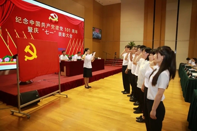大會在雄壯的國歌聲中拉開序幕,參會人員著裝整齊,佩戴黨員徽章,莊嚴肅立。在公司黨委副書記、總經理田偉同志的帶領下,預備黨員高舉右手,緊握拳頭,莊嚴宣誓,立下自己對黨忠誠的誓言,表達了為黨的事業(yè)奮斗終身的決心和愿望。