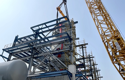 3月5日,由北京石油化工工程有限公司(簡稱:北油工程)EPC總承包的安徽碳鑫科技有限公司(簡稱:碳鑫科技)甲醇綜合利用項目乙醇聯(lián)合裝置首臺乙酸甲酯加氫反應(yīng)器順利吊裝。
