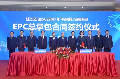 4月8日,延長石油50萬噸/年甲醇制乙醇項目EPC總承包合同簽約儀式在西安成功舉行,標志著項目建設邁入全面快速推進的實質性階段。榆林煤化公司黨委書記、執行董事韓磊,總經理、黨委副書記李軍林,凱越煤化執行董事、總經理馮學文,陜建集團黨委委員、副總經理高建成,北油工程公司黨委書記、董事長許緘濤,華陸公司董事長、黨委書記王海等領導出席簽約儀式。凱越煤化黨總支書記、項目指揮部常務副指揮喬祝海與北油工程副總經理鄭薇代表雙方簽字。